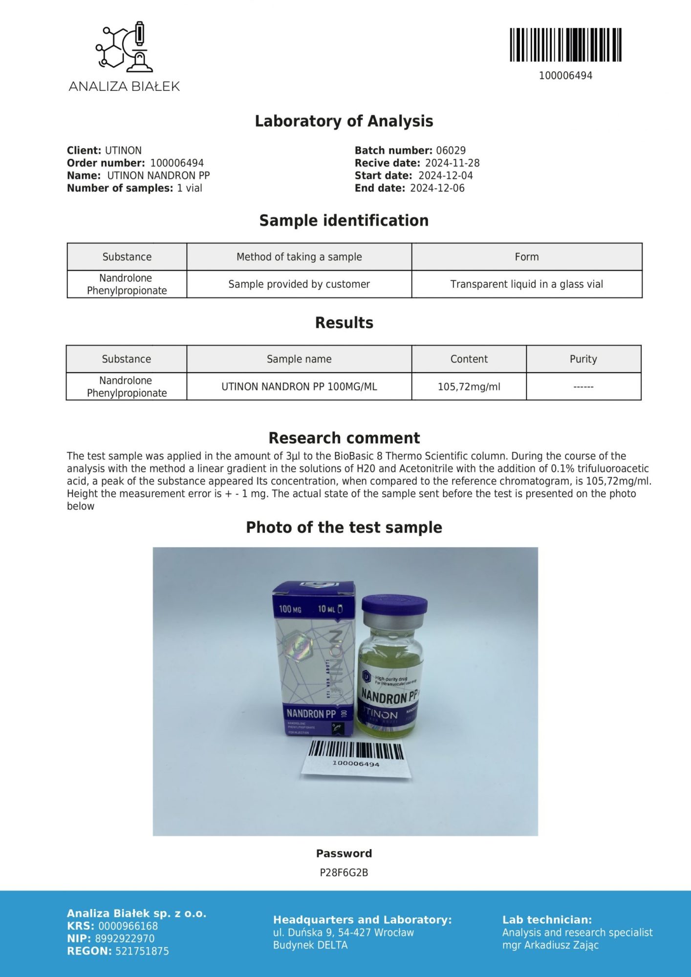 Onze producten zijn zorgvuldig lab getest om de hoogste betrouwbaarheid te garanderen. Je kunt rekenen op snelle levering en een betrouwbare service, zodat je je kunt concentreren op wat echt belangrijk is: je training en vooruitgang. Kies voor NPP 100 mg/ml en ervaar de voordelen van een product dat kwaliteit en eerlijkheid hoog in het vaandel heeft staan.